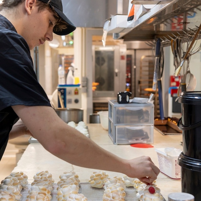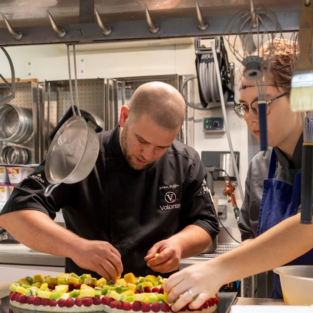 Julien Ruffin, Compagnons du Tour de France, il sublime les pâtisseries traditionnelles. Des créations modernes, inventives avec un savoir-faire artisanal qui fait de la Pâtisserie Valantin une adresse incontournable à Bordeaux.